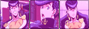 this is the man. how did you know he's my favorite character? i have drawings of him on the back of my phone. i have a mal descendants wig that i bought from a yardsale that i soaked in shampoo & laundry soap for 4 hours, rinsed thoroughly, dried, and spent hours brushing all the tangles out just so i could style it into josuke's pompadour. that is my love, my boy, my pretty princess, and a person whom i would like to make te de canela con miel for. i need to print out some images of him to put in a pink heart frame and read a bedtime story to him every night. |